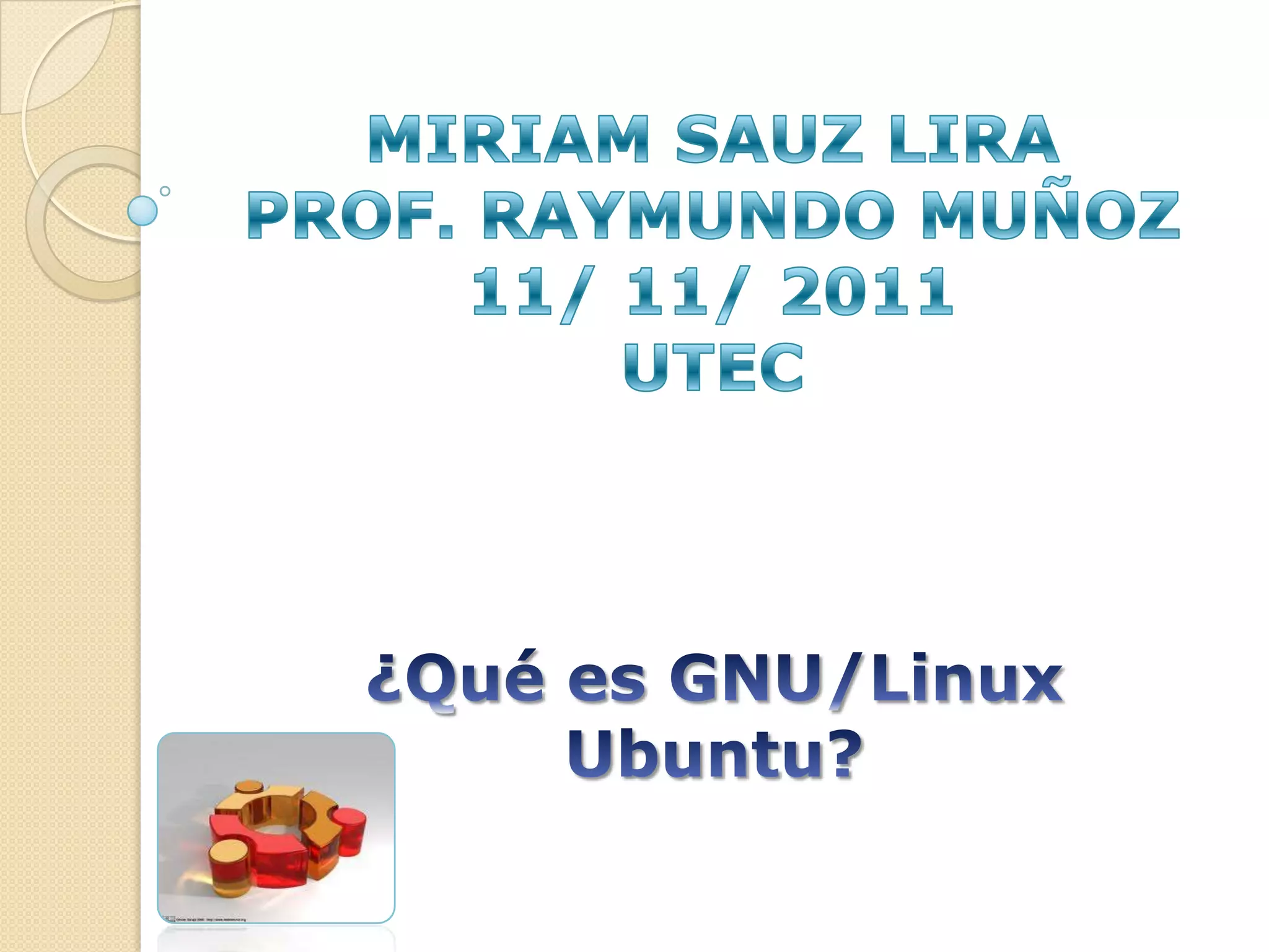 Ubuntu es un sistema operativo de código abierto basado en Debian que utiliza un núcleo Linux. Es mantenido por Canonical y la comunidad de desarrolladores. Su interfaz de usuario se desarrolló de forma independiente a GNOME debido a diferencias en el diseño. El objetivo inicial de Ubuntu era lanzar nuevas versiones cada seis meses manteniendo el sistema actualizado.