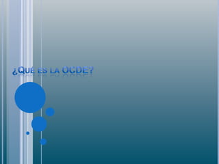 La Organización para la Cooperación y Desarrollo Económicos (OCDE) es una organización intergubernamental formada por 30 países industrializados que busca maximizar el crecimiento económico de sus miembros y contribuir al desarrollo global a través del intercambio de información y armonización de políticas. Los países miembros representan la mayor parte de la economía mundial y trabajan para promover el comercio internacional, el empleo y el nivel de vida.
