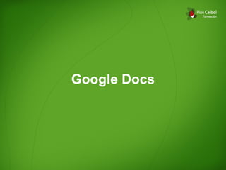 El documento describe las funciones de Google Docs, un espacio de ofimática en línea que permite crear, editar y compartir documentos de texto, hojas de cálculo, presentaciones, formularios y dibujos de forma gratuita y en cualquier dispositivo con acceso a Internet. Google Docs ofrece almacenamiento en la nube, edición y publicación de documentos en línea, guardado automático y acceso desde múltiples dispositivos de forma sincrónica.