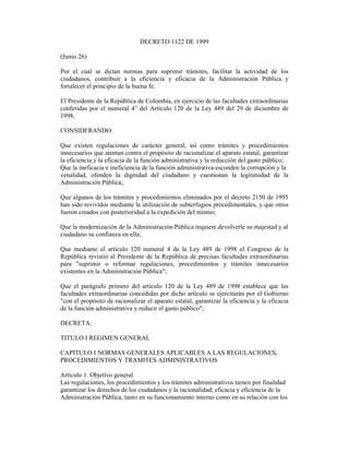 Este decreto establece normas para simplificar trámites y procedimientos administrativos con el fin de mejorar la eficiencia de la administración pública y facilitar las actividades de los ciudadanos. En particular, prohíbe exigir requisitos no previstos en la ley, garantiza los derechos de los administrados y establece responsabilidad por retrasos injustificados. Además, promueve el uso de medios tecnológicos, garantiza la atención al público y el acceso a la información. El objetivo general es rac