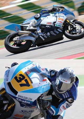 The Stratos Racing Team was formed in 2013 by several motorsports professionals led by Carlos Morante. They compete in the Stock Extreme and Moto2 categories of the CEV Repsol championship with Héctor Faubel riding the BMW S1000RR HP4 in Stock Extreme and Román Ramos aiming to win the Moto2 title on the Ariane2 motorcycle. The team hopes its experience and talented riders can achieve success in both categories.