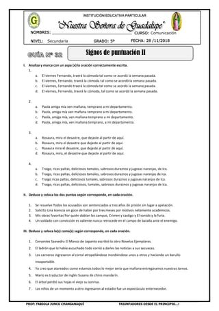 Este documento es una lección sobre el uso de signos de puntuación como comas, puntos y coma, rayas y comillas. Contiene 10 secciones con ejercicios para identificar y corregir el uso incorrecto de estos signos de puntuación en oraciones dadas, y crear nuevas oraciones utilizando los signos correctamente. El objetivo es enseñar a los estudiantes a reconocer y aplicar de manera apropiada diferentes signos de puntuación en el lenguaje escrito.