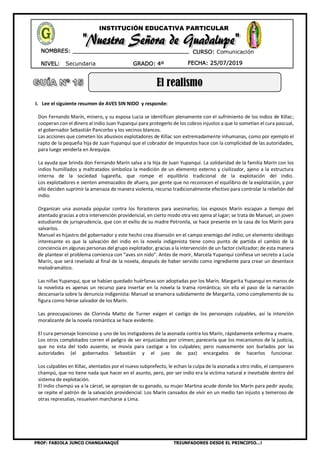1) La novela Aves sin Nido denuncia la explotación y abuso de los indígenas en el Perú del siglo XIX por parte de las autoridades y terratenientes.