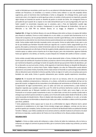 Este documento resume los primeros nueve capítulos de la novela Madame Bovary de Gustave Flaubert. Narra la vida de Emma Bovary desde su infancia en un convento hasta su matrimonio con el doctor Charles Bovary y su decepción al darse cuenta que su vida de casada no es tan emocionante como había imaginado. También describe su primer encuentro con el vizconde en una fiesta aristocrática que enciende sus deseos de una vida más lujosa.