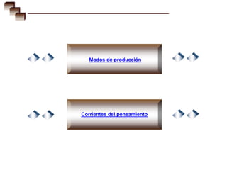 El documento resume los principales modos de producción históricos como la comunidad primitiva, el esclavismo, el feudalismo, el capitalismo y el socialismo. También describe las principales corrientes del pensamiento económico como los escolásticos, mercantilistas, fisiócratas, clásicos, marxistas, neoclásicos y keynesianos. El documento ofrece una explicación concisa pero completa de estos conceptos fundamentales de la economía.