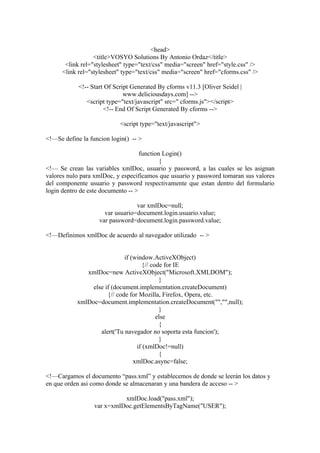 Si se hace clic en los iconos, estos abrirán enlaces a blogs y páginas relacionadas. El formulario de inicio de sesión pide los datos de usuario y contraseña para acceder a más información, y al ingresarlos correctamente dirige a una página enter.html, de lo contrario a una página err.html. La siguiente página presenta los servicios de redes y telecomunicaciones de Antonio & Co.