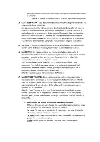 I. Los principales documentos utilizados en las compras y ventas de existencias incluyen la requisición de compra, orden de compra, guía de remisión, parte de entrada, factura y kardex físico. Estos documentos son utilizados internamente para iniciar el proceso de compra y registrar la entrada de mercancías.