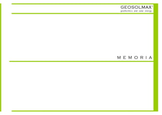Este documento describe una tecnología para viviendas de energía cero que integra la captación de energía solar, su almacenamiento en el subsuelo y su distribución para climatizar la vivienda de manera eficiente. El sistema aprovecha la energía solar térmica, la geotermia natural y las ganancias internas de calor para proporcionar calefacción, refrigeración y agua caliente con un balance energético nulo o negativo.