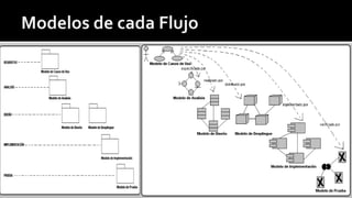 Este documento presenta el Método Unificado de Desarrollo de Software (PUDS) que sirve para construir, desarrollar y mantener software. Usa el Lenguaje Unificado de Modelado (UML) para modelar el sistema. El método sigue un enfoque iterativo e incremental dirigido por casos de uso para analizar requerimientos, diseñar, implementar, probar e integrar el sistema.