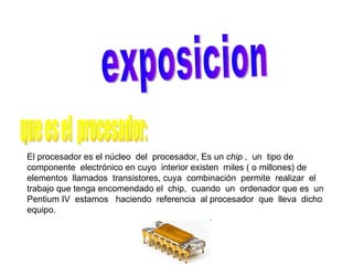 El procesador es el componente central de una computadora. Un disco duro almacena la información de forma permanente mediante un sistema magnético, incluyendo el sistema operativo. La memoria RAM es volátil y se usa para almacenar temporalmente datos e instrucciones mientras la computadora está encendida. La placa base sirve como alojamiento para otros componentes y permite su interacción para procesar información.