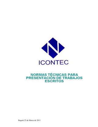 El documento presenta la normativa ICONTEC utilizada para la presentación de trabajos en instituciones educativas de Colombia. Incluye la portada con título, nombres de autoras y detalles de la institución educativa. Contiene secciones de nota de aceptación, dedicatoria y agradecimiento. Finaliza con un glosario de términos técnicos relacionados con hardware de computadoras.