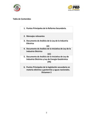 Este documento analiza la Ley de la Industria Eléctrica en México. Explica el debate sobre si la industria eléctrica debe ser manejada por monopolios estatales o empresas privadas. También describe las características físicas únicas de la electricidad y los riesgos de un mercado privado. Finalmente, analiza los casos de la privatización eléctrica en Gran Bretaña y la desregulación del mercado en California, señalando que no hubo reducciones de tarifas para los consumidores.