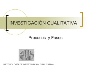 Este documento describe las fases y procesos de la investigación cualitativa. Comienza con la fase preparatoria donde el investigador establece el marco teórico y determina el tema de estudio. Luego diseña el proyecto de investigación definiendo preguntas, objetivos, métodos y técnicas. La siguiente fase implica el trabajo de campo como la recolección de datos a través de entrevistas y observaciones. Finalmente, el investigador analiza los datos, obtiene resultados, verifica conclusiones y elabora un informe final.