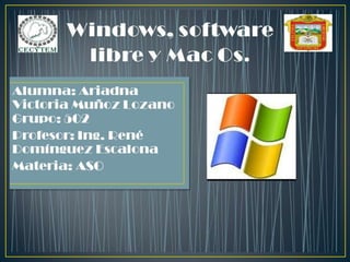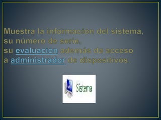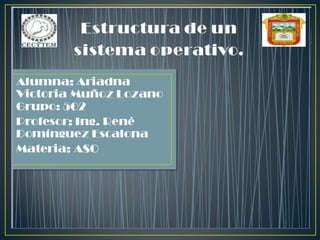 El documento describe la estructura y tipos de sistemas operativos. Explica que los sistemas operativos tienen una estructura modular o de anillos/capas, con la estructura modular siendo más primitiva y la estructura de anillos/capas dividiendo al sistema operativo en pequeñas partes bien definidas. También describe los diferentes tipos de sistemas operativos, incluyendo monousuario/multiusuario, monotarea/multitarea, y sistemas operativos distribuidos.