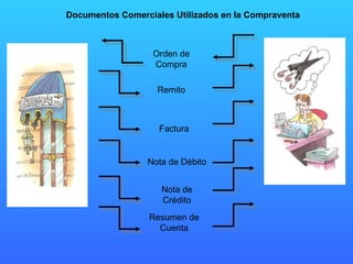Los documentos comerciales más utilizados en la compraventa son la orden de compra, el remito, la factura, la nota de débito, la nota de crédito y el resumen de cuenta. Estos documentos son esenciales para registrar las transacciones entre compradores y vendedores.