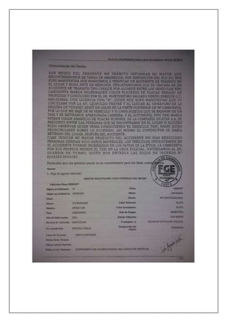 El documento presenta una denuncia escrita dirigida al Juez de Garantías Penales de Santo Domingo de los Tsáchilas. En ella, Julio Tampico Limón Amargo acusa a Julio Tuco Porta Cuento de difamarlo públicamente al acusarlo falsamente de robar vacas. Limón solicita que se notifique a Porta Cuento por el delito de injuria calumniosa y que sea sancionado con la pena máxima de dos años de prisión más multa. También pide que Porta Cuento pague los costos del pro