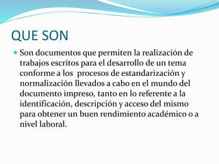 Este documento define y explica los conceptos básicos de ensayos, informes y resúmenes. Describe que los ensayos y informes son documentos escritos que permiten desarrollar un tema, mientras que los resúmenes reducen un texto a lo esencial. Además, explica la estructura, clases y recomendaciones para elaborar cada uno de estos tipos de documentos.