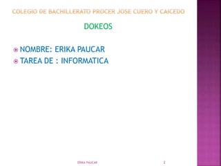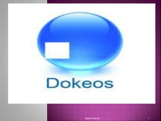 Dokeos es un software libre y gratuito para la gestión del aprendizaje y la administración de contenidos educativos. Proporciona herramientas como importación y exportación de cursos SCORM, espacios de aprendizaje social, encuestas, videoconferencia, y generación de informes detallados. Es una plataforma flexible que puede ser accesible desde cualquier ordenador con conexión a Internet.