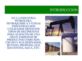 Este documento proporciona información sobre el diseño de tanques de almacenamiento atmosféricos según el código API-650. Explica los diferentes tipos de tanques, materiales, métodos de cálculo de espesores de pared, y consideraciones en el diseño de la pared, fondo y placa anular. También cubre códigos aplicables como el API-650, selección de materiales, corrosión admisible y cargas a considerar en el diseño.