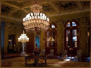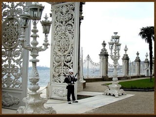 Dolmabahçe Palace en Estambul, Turquía fue el centro administrativo del Imperio Otomano y luego la residencia presidencial de Mustafa Kemal Atatürk, el fundador de la República de Turquía. El palacio, construido a un costo equivalente a 35 toneladas de oro, albergó a seis sultanes otomanos y fue el hogar final de Atatürk antes de su muerte en 1938.