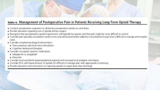 El dolor postoperatorio es una experiencia desagradable asociada a daño en el tejido, y su manejo se puede abordar mediante analgesia multimodal. Esto implica la administración de múltiples fármacos por diferentes vías para maximizar el efecto y reducir efectos adversos. Ejemplos de combinaciones incluyen paracetamol con AINEs y opioides, así como bloqueos neurales.
