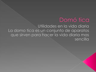 La domótica se refiere al conjunto de sistemas que automatizan una vivienda para proporcionar servicios de gestión energética, seguridad, confort y comunicación. Estos sistemas integran sensores, actuadores y redes de comunicación para controlar aspectos como el ahorro energético, la climatización, la iluminación, la seguridad y las comunicaciones dentro y fuera del hogar. La domótica también puede aplicarse para favorecer la autonomía de personas con discapacidad.