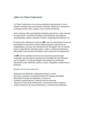 El e-learning consiste en la educación y capacitación a través de Internet, permitiendo la interacción del usuario con materiales mediante herramientas informáticas. Este nuevo concepto educativo, posibilitado por Internet, se posiciona como la forma de capacitación predominante en el futuro, transformando la educación y abriendo puertas al aprendizaje individual y organizacional. El e-learning comprende aspectos pedagógicos y tecnológicos, siendo los beneficios la reducción de costos, rapidez y flexibilidad en el acceso a la capacit