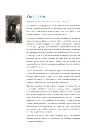 3) Resalta que las mujeres fueron las primeras en ver a Jesús resucitado y recibir el mensaje de alegría de su resurrección.