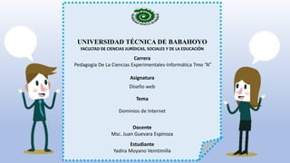 Los dominios permiten a los usuarios identificar sitios web y enviar correo electrónico usando nombres en lugar de direcciones IP numéricas. Cada dominio debe ser único y apunta a un solo servidor, aunque un servidor puede alojar múltiples dominios. Los dominios populares son .com, .net y .org, pero también existen .info y otros. Los dominios facilitan la navegación web y la comunicación en Internet.