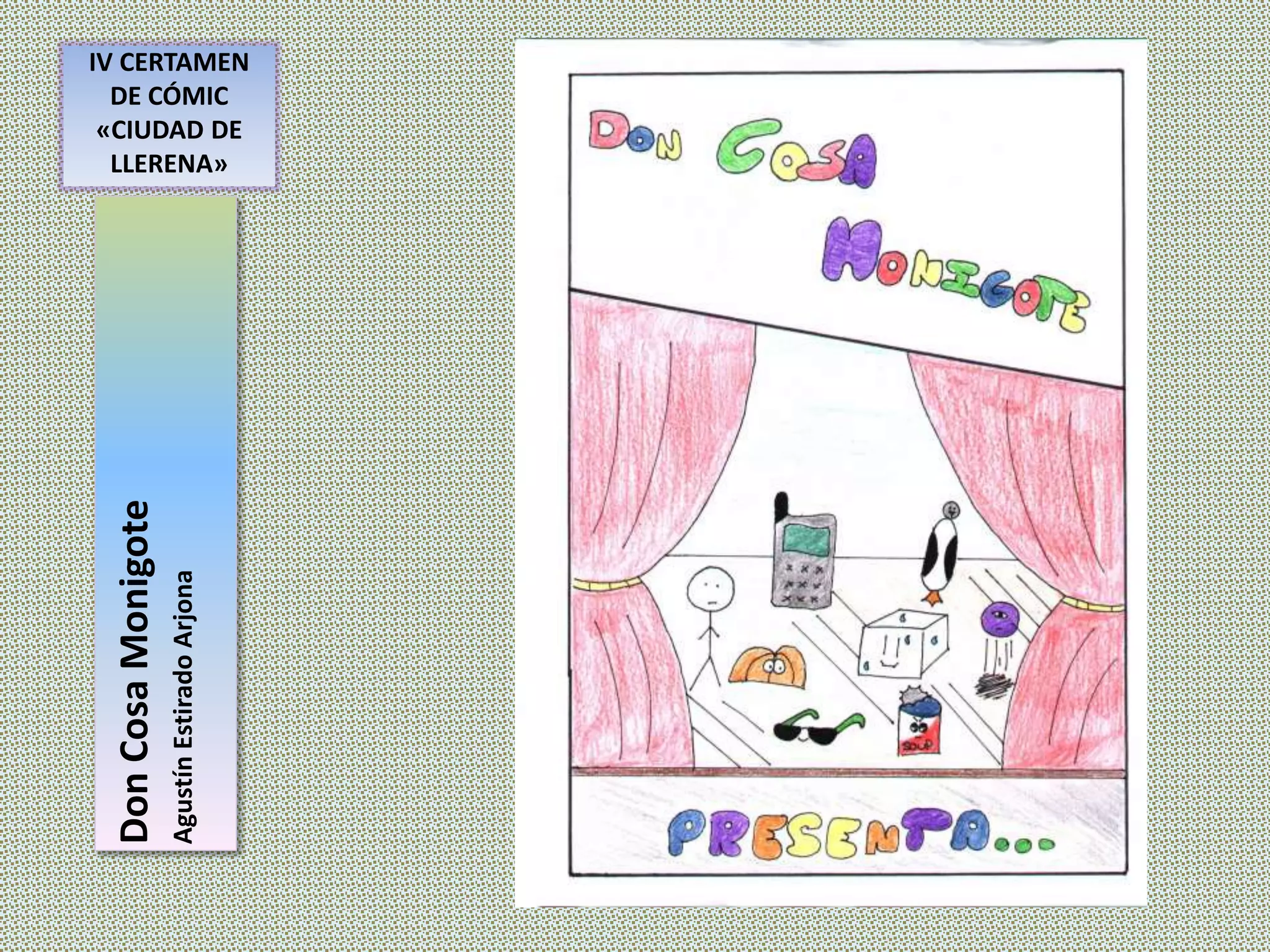 El documento anuncia el IV Certamen de Cómic de la Ciudad de Llerena. Se celebrará en Llerena y los organizadores son DonCosaMonigote y Agustín Estirado Arjona.