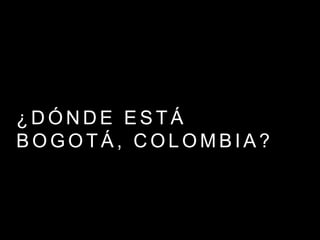 El documento hace varias preguntas sobre la ubicación de lugares y atracciones importantes en y alrededor de Bogotá, Colombia, incluyendo dónde se encuentra la ciudad, el aeropuerto, el banco, el baño, el hotel, el mercado, el museo, la playa, la plaza, el restaurante, la tienda y las ruinas. También pregunta sobre la ubicación de la Amazonia con respecto a Bogotá.