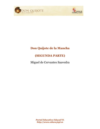 Este documento resume el primer capítulo de la segunda parte de Don Quijote de la Mancha de Miguel de Cervantes. Narra cómo el cura y el barbero visitan a Don Quijote después de un mes para evaluar su estado mental. Lo encuentran hablando con gran juicio y discreción. Sin embargo, cuando el cura menciona noticias sobre el ejército turco, Don Quijote propone convocar a todos los caballeros andantes de España para enfrentar al Turco, sugiriendo que aún cree ser un caballero.