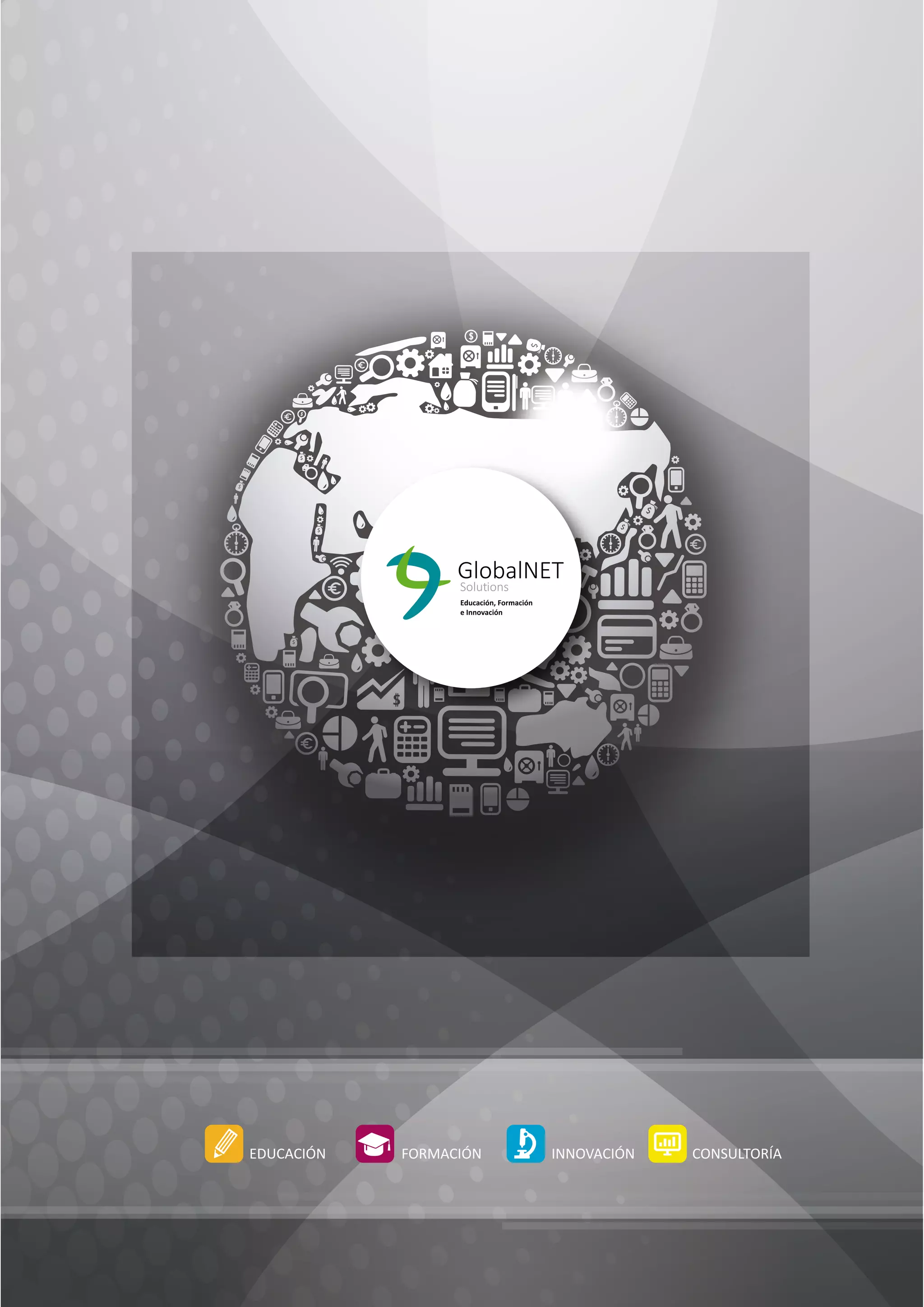 Este documento proporciona una descripción general de los servicios ofrecidos por GlobalNet Solutions, una empresa de soluciones y servicios globales. La empresa se especializa en educación, formación, innovación y consultoría estratégica. Ofrece programas y servicios tales como INTECOM para la integración curricular de competencias clave, un gabinete psicopedagógico y terapéutico, y DESCOM para el desarrollo de competencias personales y profesionales.