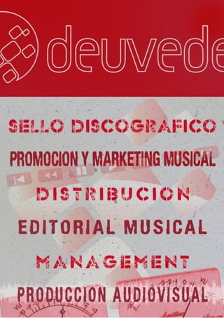 Deuvede Music es una compañía discográfica española que ofrece servicios integrales de marketing, promoción y gestión para artistas y compositores con más de 20 años de experiencia en la industria musical. La empresa se adapta a las nuevas tecnologías, transformando el modelo de negocio del sector y priorizando la promoción y la gestión personalizada de los artistas. Además, brinda servicios de producción audiovisual, gestión de derechos y distribución tanto física como digital, apoyando a sus clientes en todas las fases de su carrera artística.