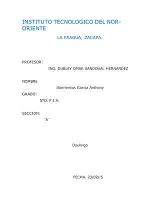 Duolingo es un sitio web y aplicación gratuita para aprender idiomas. Ofrece cursos de español, inglés, francés, alemán y portugués para principiantes, e incluye funciones como traducciones de textos que ayudan a financiar el sitio. Los usuarios avanzan a su propio ritmo a través de lecciones y reciben retroalimentación en su progreso.