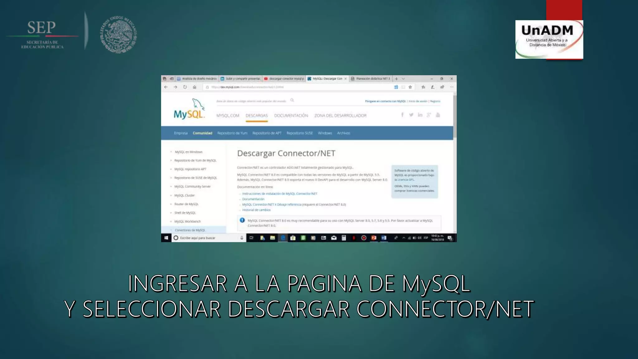 El documento contiene 3 referencias sobre cómo conectar una base de datos MySQL a Visual Studio 2017. La primera referencia es de un sitio web de la UNAD México y proporciona información sobre el uso de MySql.Data.MySqlClient. La segunda referencia es del sitio web de Oracle y documenta MySql.Data.MySqlClient. La tercera referencia es de un video de YouTube que muestra cómo conectar una base de datos MySQL a Visual Studio 2017.