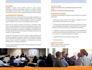 Este documento describe un programa de formación docente técnico profesional de la Universidad de Santiago de Chile. El programa dura 5 semestres y otorga el título de Profesor de Estado para la Educación Técnico Profesional y Licenciado en Educación Técnico Profesional. Está destinado a personas que ejercen la docencia en áreas técnicas sin poseer el título de Profesor de Estado. El documento incluye detalles sobre los requisitos de ingreso, el plan de estudios y horarios de clases.