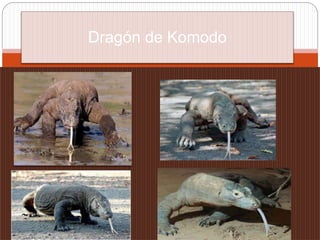El dragón de Komodo es el lagarto más grande del mundo que vive en varias islas de Indonesia. Puede crecer hasta 3 metros de largo y pesar 70 kg, lo que les permite ser los superdepredadores de sus ecosistemas. Aunque se alimentan principalmente de carroña, también cazan presas como invertebrados, aves y mamíferos pequeños. Su mordedura contiene bacterias que pueden matar a sus víctimas en horas, permitiéndoles comer la carroña. Están en peligro de extinción y su há