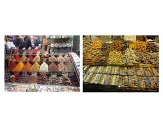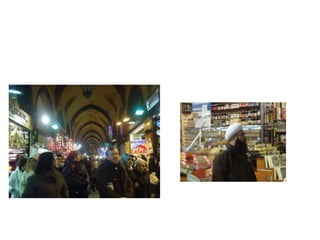 El documento describe los principales lugares históricos y religiosos de Estambul a través de los tiempos. Comienza con restos arqueológicos pre-cristianos y luego describe la ciudad bizantina de Constantinopla, incluyendo la iglesia de Hagia Sofía. Luego pasa a describir lugares de la época islámica como el Palacio de Topkapi y las mezquitas Azul y de Eyup. Finalmente menciona brevemente el Palacio de Dolmahbaçe de la época otomana. El documento pro