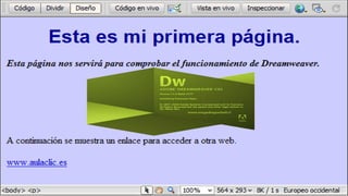 Dreamweaver es un software para creación de páginas web que permite editar el código HTML y CSS de manera visual. Inicialmente fue desarrollado por Macromedia y ahora es propiedad de Adobe. Ofrece características como compatibilidad con sistemas de gestión de contenido, inspección de CSS y pruebas en diferentes navegadores. Se puede adquirir directamente en la página web de Adobe por aproximadamente 3,000 pesos.