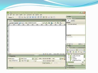 Dreamweaver es un software para crear páginas web profesionales de forma visual sin necesidad de programar código HTML manualmente. Permite la integración con sistemas de gestión de contenidos, inspeccionar hojas de estilo en cascada aplicadas, probar sitios web en diferentes navegadores a través de Adobe BrowserLab y configurar sitios locales y remotos de manera sencilla.