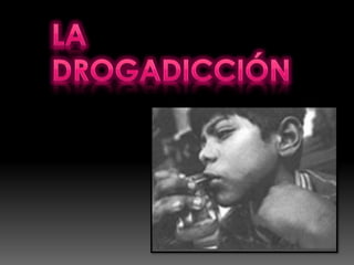 Este documento describe la drogadicción como una enfermedad causada por la dependencia a sustancias que afectan el sistema nervioso central. Explica que las drogas pueden tener diversos efectos como alucinaciones, alteración de los sentidos, euforia o desesperación, e incluso llevar a la locura o la muerte. Además, causa dos tipos de dependencia: física, que genera síntomas de abstinencia al interrumpir el consumo, y psíquica, caracterizada por el estado de euforia y malestar que l