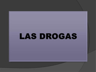 Este documento define las drogas como sustancias químicas o naturales que alteran los procesos físicos y de comportamiento del cuerpo humano cuando se introducen voluntariamente. Explica los mecanismos de acción de las drogas y los efectos de varios tipos comunes como estimulantes, depresores, alucinógenos y cannabis. También describe factores como la tolerancia y la dependencia que pueden desarrollarse con el uso continuado de drogas.