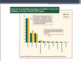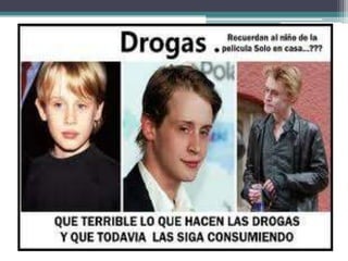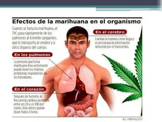 Este documento define las drogas y describe diferentes tipos de drogas como el cannabis. Define drogas como cualquier sustancia que altere el funcionamiento del sistema nervioso central y pueda crear dependencia psicológica, física o ambas. Explica que el cannabis se extrae de la planta Cannabis sativa y se consume principalmente a través de la marihuana y el hachís, los cuales pueden tener efectos en el cerebro como desorientación, risas incontroladas, somnolencia y alteraciones en la memoria, atención y concentración.