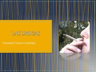 El documento trata sobre las drogas, incluyendo los tipos de drogas, los problemas que conducen a su consumo, y las consecuencias para el consumidor y las personas a su alrededor. Según la investigación, las drogas incluyen sustancias como alcohol, tabaco, marihuana, cocaína, éxtasis y estimulantes, y su consumo puede generar dependencia psicológica y física, así como síndromes de abstinencia. Los estudios muestran tasas variables de consumo de drogas entre estudiantes de secundaria.