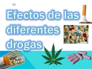 1) El documento clasifica las drogas en dos categorías: drogas permitidas como el tabaco y el alcohol, y drogas penalizadas como la marihuana, la heroína y la cocaína. 2) Explica que la adicción a las drogas es una enfermedad que hace que la persona anteponga el consumo de drogas sobre otras actividades importantes y pierda el control sobre su consumo. 3) Describe los efectos dañinos de varias drogas como la marihuana, la heroína y el éxtasis en el cuerpo y la mente.