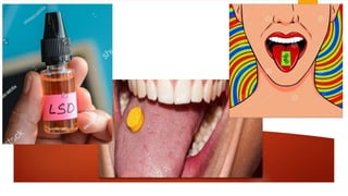 El documento proporciona información sobre diferentes tipos de alucinógenos y sus efectos. Explica que los alucinógenos como el LSD y la fenilciclidina actúan en el cerebro y pueden causar euforia, alteraciones sensoriales y cambios en el estado de ánimo. También describe los efectos a corto y largo plazo de los alucinógenos como alucinaciones y psicosis. Finalmente, analiza otras drogas como los poppers y sus sales de baño, detallando sus usos recreacionales, efectos