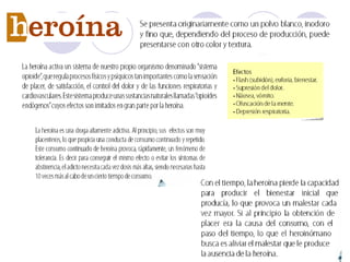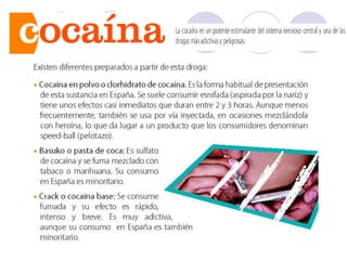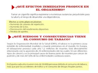 Este documento describe varios factores de riesgo y protección frente al consumo de drogas. Entre los factores de riesgo se encuentra la edad temprana de inicio, características individuales como la genética, situaciones familiares como el consumo de los padres, y la presión del grupo de iguales durante la adolescencia. Los factores de protección incluyen tener una buena comunicación con los padres, límites familiares claros y supervisión.