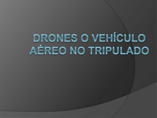 Los drones son aeronaves no tripuladas que pueden volar de forma autónoma y sostenida mediante motores de explosión o reacción. Existen varios tipos de drones como modelos de aeroplanos, cuadricópteros y tipos insecto. Los drones tienen múltiples aplicaciones como cartografía aérea, prevención de incendios, seguridad, agricultura, geología, construcción e inspecciones, control de multitudes e investigación criminal.