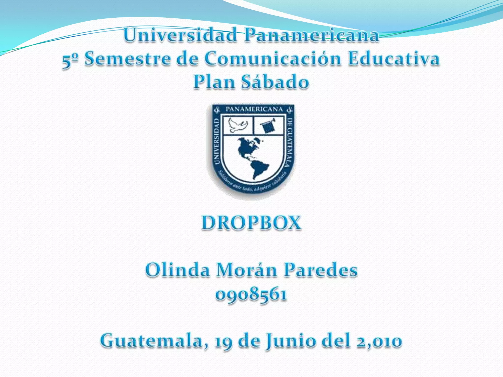 Dropbox es una herramienta en línea que permite compartir archivos de hasta 2 GB de forma práctica. Solo se necesita una cuenta de Dropbox y que la otra persona también tenga una para poder acceder a los archivos compartidos desde cualquier computadora conectada a Internet. El documento detalla cómo usar Dropbox para compartir una fotografía y confirma que el archivo se subió correctamente.